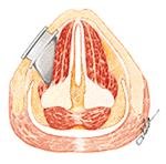 Podczas zabiegu lekarze wycinają fragment krtani - tak, aby dostać się do fałdu głosowego, który jest przesuwany w odpowiednie miejsce. Pacjent w czasie zabiegu współpracuje z lekarzami, którzy umieszczają uszkodzony fałd tak, aby głos pacjenta był jak najlepszy.